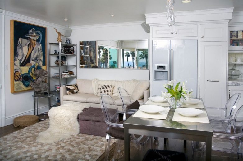 Для увеличения гостиной комнаты многие люди убирают стенку (еще ее называют перегородкой) между комнатой и кухней. Таким образом появляется одна большая комната, в которой одновременно стоят плита с холодильником и удобный диван с журнальным столиком.