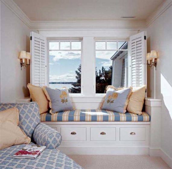 Изумительные залитые солнцем окна – это идеальные места, чтобы разложить подушки, поставить поднос с любимым напитком, положить мягкое покрывало и может быть пару книг. Обустроив оконный проем, вы можете увеличить число посадочных мест в доме.