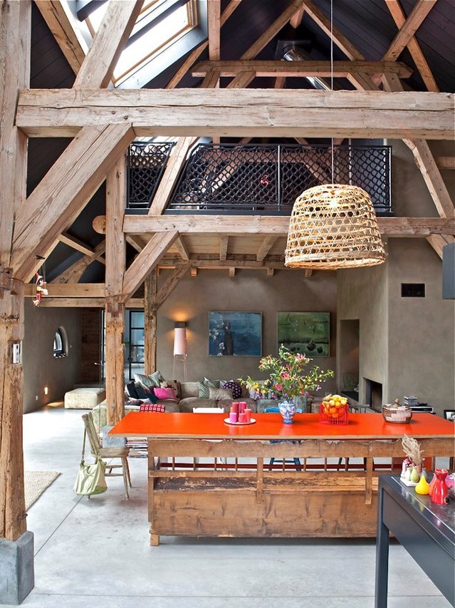 Его реконструировали из обычного старого сельского дома. Оставили сваи и деревянные колонны, поддерживающие второй уровень для отдыха, а серые стены стали идеальным полотном для ярких деталей.