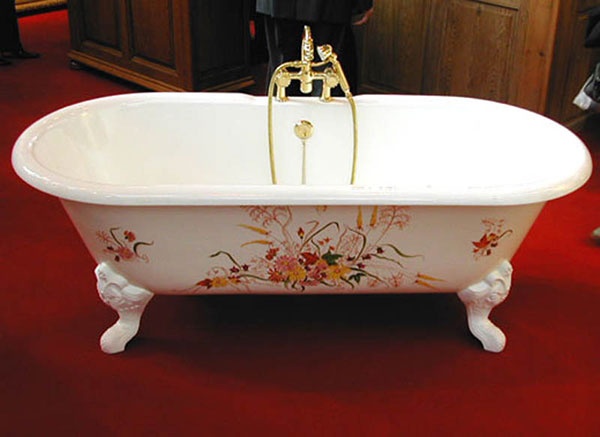 Чугунная ванна имеет достаточно высокую теплоемкость — она долго нагревается, но температура воды также держится длительное время (остывание до комнатной температуры происходит в среднем за полтора часа). Чугунные ванны бывают, как правило, прямоугольными. Чугун — материал, из которого сложно формировать ванну нетрадиционной формы. Треугольные, круглые и иные по форме ванны могут быть сделаны из других материалов.