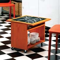 На этот столик можно не только что-то поставить и положить. На нем очень просто играть в крестики-нолики, рисовать мелками… А еще прямо на нем можно записать то, что важно не забыть.