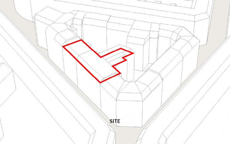 Архитекторы считают, что нужно максимально использовать все возможности пространства. Поэтому во время работы над проектом им пришла идея добавить не просто еще один этаж, но и зону для отдыха на крыше. Так как дом находится в загруженном районе, на пересечении трех улиц, внутренний двор, который образуется в треугольнике между несколькими зданиями, очень узкий и практически не получает солнечного света.