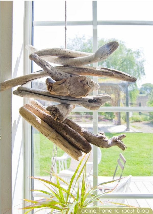 Подход к созданию колокольчиков может быть и более органическим: просто используйте кусочки плавника и несколько красивых ракушек. Просверлите небольшие отверстия в деревяшках и прикрепите их к раковинам с бисером.