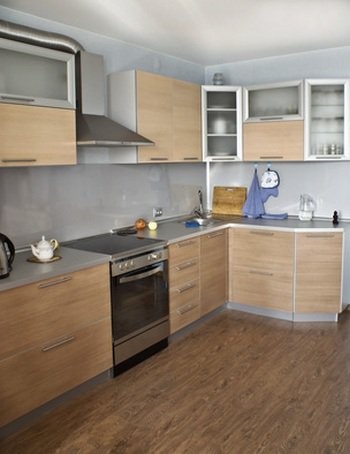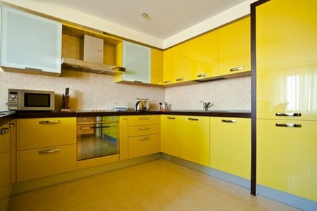 Технология производства пленочных фасадов проста и дешева, поэтому это самый бюджетный вид фасадов. К их преимуществам можно отнести дешевизну, очень большой выбор декоров и расцветок, в том числе глянцевых. К недостаткам – то, что фасады боятся высокой температуры (свыше 100 градусов), поэтому эксплуатировать их нужно с осторожностью. Например, не оставлять включенной конфорку на плите, поскольку находящиеся поблизости фасады верхних шкафчиков могут деформироваться, на них отклеится пленка.