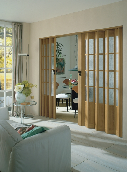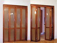 Книжка состоит из двух секций, которые могут открываться в любую из сторон, а гармошка – из трех и более. Основными преимуществами дверей гармошек являются экономия пространства в помещении благодаря тому, что они не забирают лишнее пространство при открывании, а также широкое разнообразие внешнего вида моделей, которое поможет подчеркнуть индивидуальность и хороший вкус хозяина. Конструкция может быть украшена при помощи множества современных материалов и иметь различные декоративные эффекты в зависимости от личных пожеланий потребителя и особенностей интерьера помещения.