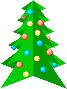 Для этой ели понадобится картон, можно использовать упаковку от бытовой техники и обклеить ее цветной или красочной оберточной бумагой, либо приобрести листовой картон того цвета, который задуман. Желательно вырезать выкройку из простой бумаги, а с нее перенести изображение ели на картон. Понадобится два одинакового шаблона, отличающихся только прорезями, на одном прорезь будет идти от верхушки до середины формы, на другом от середины до низа. С помощью прорезей две формы можно будет скрепить вместе и получится объемная ель. Останется ее только украсить. Украшения можно укреплять в специальные прорези, которые предварительно необходимо сделать в картоне.