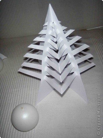 11. Мои елочки выполнены из обыкновенной офисной бумаги. Именно беленькие они мне и нравятся. Интересный вид на елочки снизу.