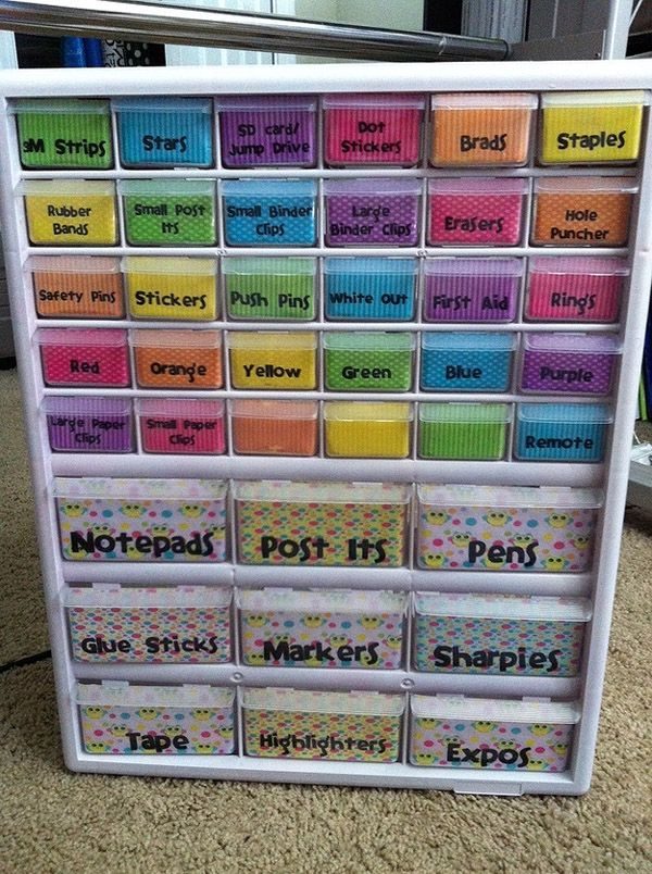 Поставьте в ящики комода или шкафа пластмассовые корзинки, чтобы ничего не валялось просто так.