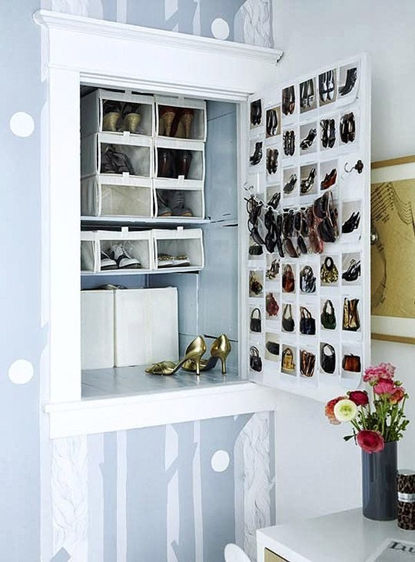 Поместите всякие мелочи, которые валяются без дела, на внутреннюю сторону дверцы шкафа.