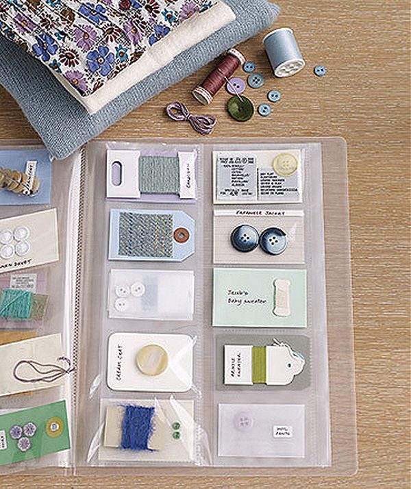 Сделайте «фотоальбом» для пуговиц и ниток.