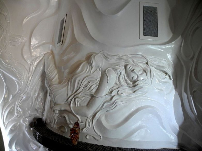Из пояснения мастера о используемых им материалов: Лепнину я делаю из смеси на основе гипса — сатенгипс от Кнауфа. Штукатурки декоративные из специальных материалов — немецких или итальянских производителей.