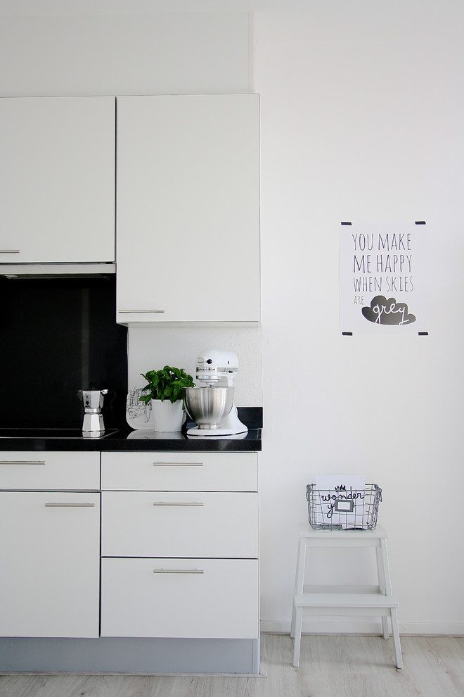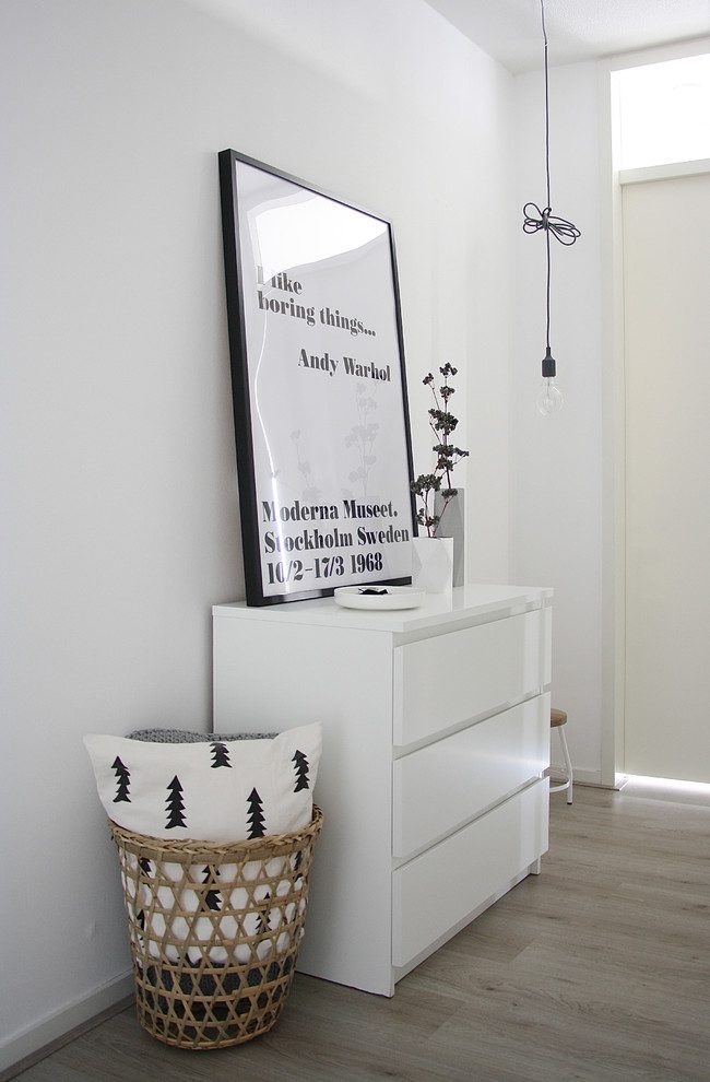 Хозяева еще многое хотят изменить в квартире. Но пока Карлин довольна уютной атмосферой дома и стилем, который они выбрали. Конечно, кому-то монохромный интерьер может показаться скучным, но, как гласит остроумная цитата в прихожей “I like boring things…” («Мне нравятся скучные вещи»), хозяйку это вполне устраивает.