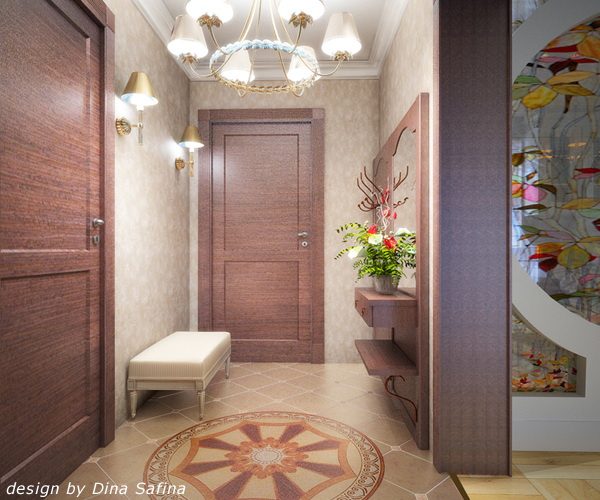 Если у вас маленькая прихожая, что очень часто встречается в наших квартирах и домах, освещение поможет еще и зрительно увеличить помещение. Висящая под потолком одинокая лампочка явно будет играть не самую лучшую роль для реализации ваших планов. Возможно, стоит сделать многоуровневое освещение. И лучше в таких помещениях размещать светильники на стенах так, чтобы свет не попадал на потолок. Хорошо, если в отделке комнаты будет достаточно глянцевых поверхностей. Это будет служить только на пользу общей картине.