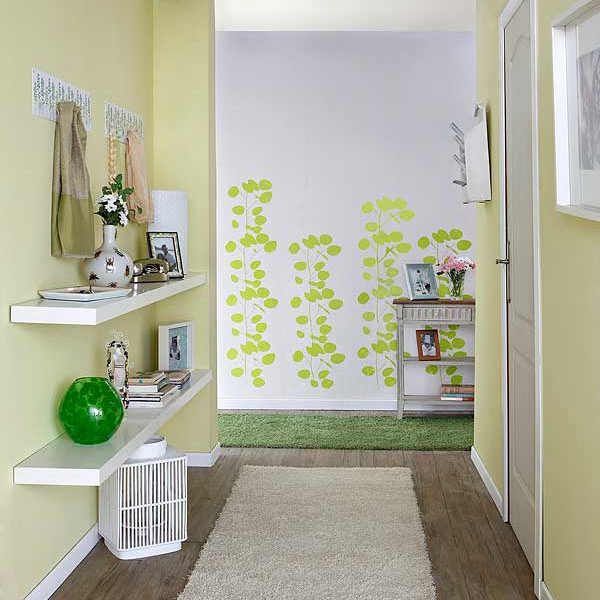 Лучше для стен выбирайте либо моющиеся обои, либо красящие вещества. Жидкие обои – ноу-хау, которое используется для оформления стен в прихожей. Такие материалы позволят вам на более долгий срок забыть о новом ремонте прихожей. Ведь сюда попадает вся пыль и грязь прямо с улицы. Именно поэтому не рекомендуется использовать ковровые покрытия на полу.