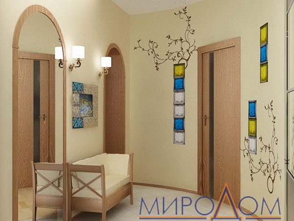 Если прихожая узкая, разместите светильники только на одной ее стене. Это визуально расширит пространство. И, конечно же, добавьте в интерьер зеркала. Лучше их повесить в верхней части стен. Для уменьшения ощущения тоннеля в прихожей, разместите в ее темном углу светильник на стене. Так будет намного лучше!