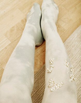 Повторите декор для другой ноги, а можно украсить колготки только на одно ноге.