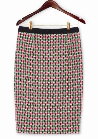 Пестрый шарф отлично сочетается с ярким рисунком на юбке.