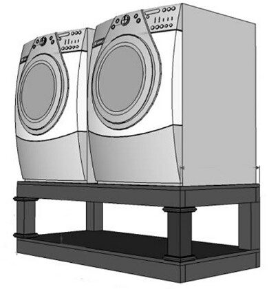 В ванной или постирочной комнате стиральную и сушильную машины можно поместить на подиум. Это позволит расположить под подиумом корзины с бельем. Стиральная и сушильная машины, таким образом, будут находиться выше, что упростит их использование – загрузку и выгрузку белья.
