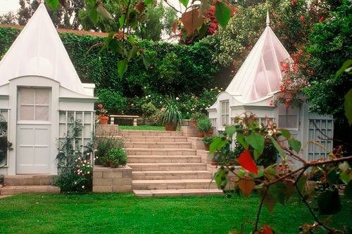 Вертикальные элементы наиболее значимы в любом саду. Без центра внимания глаз будет блуждать, и пейзаж утратит смысл. Вертикали объединяют разнородные черты дизайна. Так сквозной дверной проем фокусируется взгляд из одной части сада в другую. Это очень интересный дизайнерский прием, позволяющий сгруппировать в единое целое дом и окружающий ландшафт. Вертикальный план состоит из разных компонентов. Чрезвычайно интересен уголок сада, в котором органично сочетаются мягкие вертикальные формы — стволы деревьев, заросли кустарников, цветочные композиции, с жесткими архитектурными строениями, представленными в виде беседок-шатров, забора, увитого лианами, каменной лестницы.
