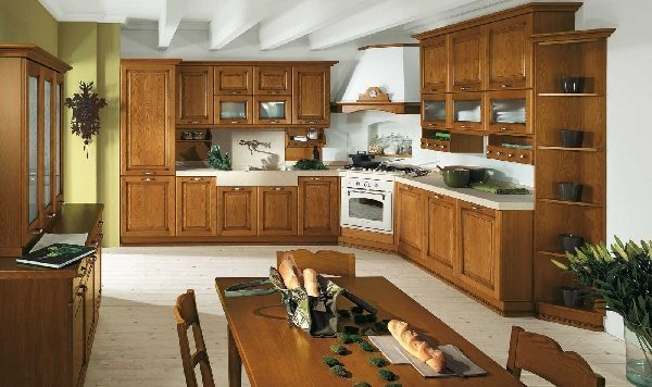 Для итальянских кухонь характерны преобладание природных материалов в отделке помещения и ярких, сочных цветовых решений, а также обилие мелких, но довольно витиеватых нюансов. Для того чтобы сделать из простой кухни кухню итальянскую, нужно обратить внимание на натуральное дерево и натуральный камень.