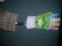 - Для детских рукавичек замечательно подходит система крепления на маленьких пластмассовых карабинах (продаются в отделах с нитками и фурнитурой). Одна часть карабина пришивается к рукаву, вторая на тонкой резинке — к варежке. Если снабдить все детские варежки карабинчиками, на улице вы сможете запросто отстегнуть одну пару и быстро заменить её на другую.