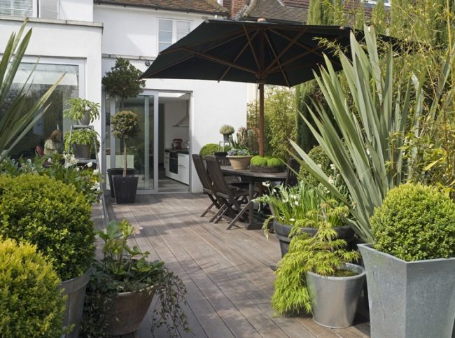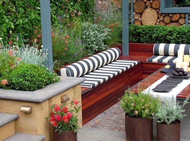 Эта тенденция означает отсутствие границ между садом и интерьером. Современный сад – это «дом на открытом воздухе», который не должен уступать по комфортности интерьеру дома. Поэтому отдельные уголки отдыха нужно оформлять так же, как отдельные комнаты в доме, или весь сад – как большую квартиру-студию, естественно, принимая во внимание, что отделочные материалы и декор здесь совершенно другие. Декор – в основном, это живые растения, а отделочные материалы – природного происхождения, защищенные соответствующими средствами. Так, в саду может быть самая настоящая гостиная, обставленная мягкой мебелью (естественно, специальной), а барбекю обладает всеми атрибутами современной кухни. В саду также может быть летний офис или спа-зона с бассейном.