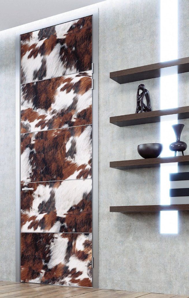 Фактурные двери из шкуры животных – актуальный тренд последних лет — идеально подходят для интерьеров квартир, загородных домов и дач. Они визуально делают пространство более теплым и уютным.