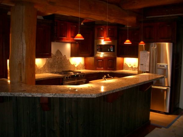 Какой же должна быть подсветка для кухни? Во-первых, рабочие зоны должны освещаться достаточно ярко светом нейтральной гаммы, чтобы не искажался натуральный цвет готовящихся продуктов. Во-вторых, светильники, располагающиеся над обеденным столом, неплохо выбрать такие, высоту расположения которых можно регулировать. Для светильников применяют лампы накаливания, люминесцентные, а также светодиодные лампы, которые компонуются обычно по несколько штук. Часто современная кухонная мебель поставляется с уже встроенной системой подсветки. Кроме того, вытяжка обычно имеет встроенную подсветку рабочей зоны варочной плиты.