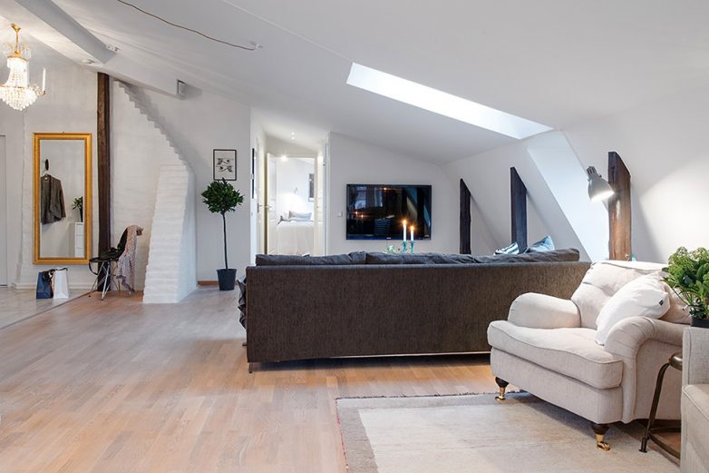 Замечательная квартира площадью 87 кв. метров расположена на последнем этаже жилого дома с видом на центр Гетеборга, Швеция.