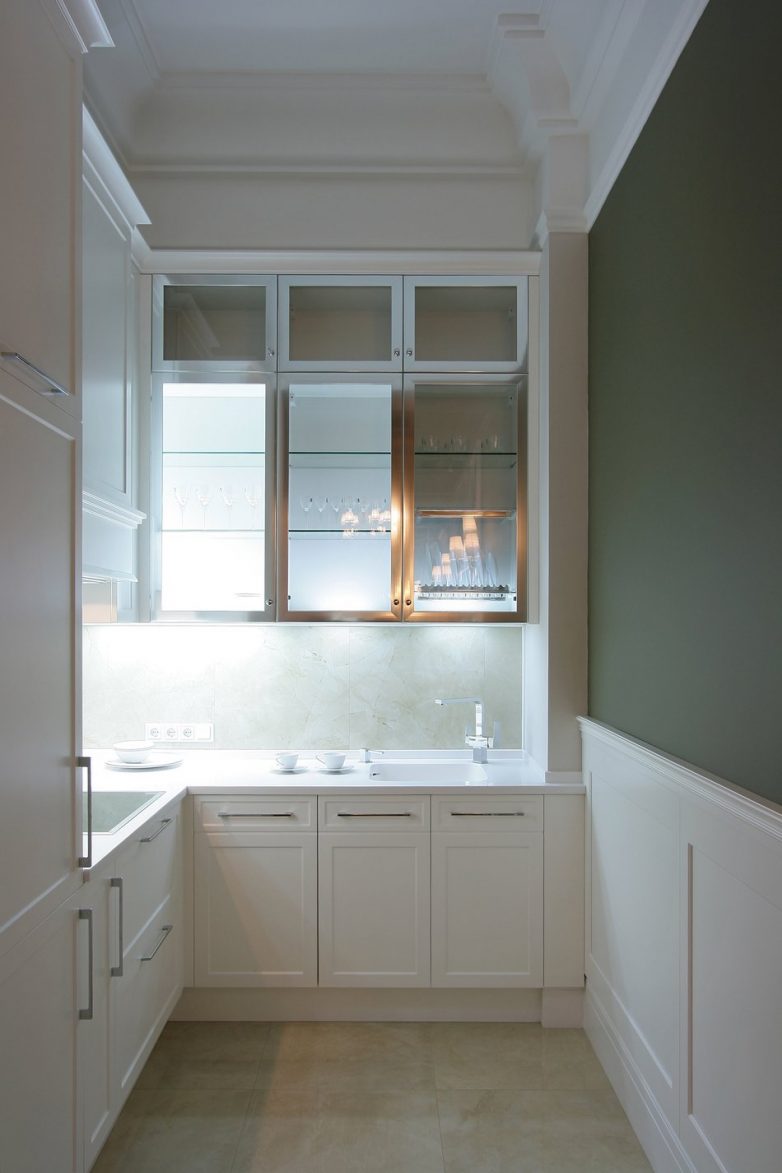 Стилистическое направление было задано не только пожеланием заказчика, но и самим культурным наследием исторического здания, в котором находится квартира. Интерьер взаимосвязан с экстерьером. Это было легко, так как изначальным пожеланием было: «Уютная современная классика».