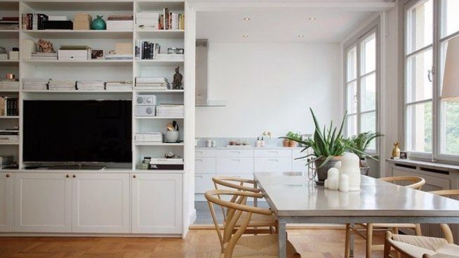 В маленькой гостиной лучше размещать телевизоры небольшого размера, иначе из-за нарушения перспективы и вследствие маленького расстояния у зрителя может закружиться голова. Лучше всего покупать мебель и шкаф, в который можно легко вмонтировать телевизор. А также при выборе такой мебели не забывайте, что в ней же нужно уместить и все составляющие системы домашнего кинотеатра, которых немало — ТВ-тюнеры, DVD- плееры, приставки, колонки, аксессуары.