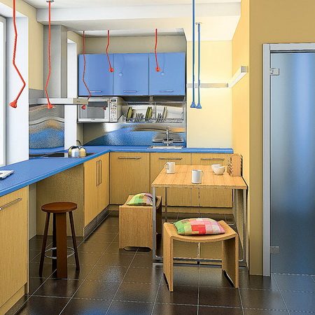 Когда в семье есть маленькое чадо, то для него нужно планировать отдельную комнату. Здесь вам может пригодится кухня. Если хорошо подумать над планом дизайна, то в 6 квадратных метрах вы расположите все необходимое для кухни и останется место для диванчика и полок у ребенка.