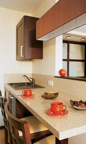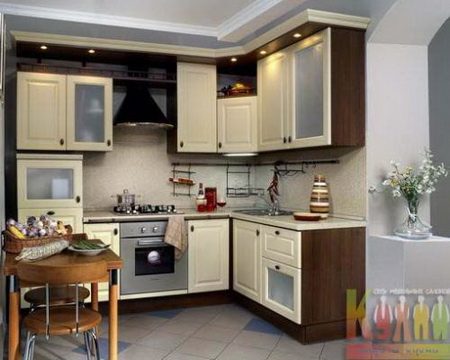 Один хороший способ дизайна хрущевки – объединение прихожей, кухни и зала. Но специалисты советуют не объединять полностью кухню с гостиной. Но даже если объединили кухню и гостиную, то пол у кухни надо выделить другим цветом. Если вы положили в зале ламинат, то на кухне положите линолеум.
