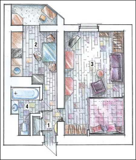Если же вы настроились на изменение дизайна хрущевки, то надо заранее представить общий характер жилого пространства с учетом индивидуальных пристрастий и потребностей, того оборудования и мебели, что уже имеете. Тогда будет понятно, какие материалы нужно докупить для максимального усовершенствования своего жилища.