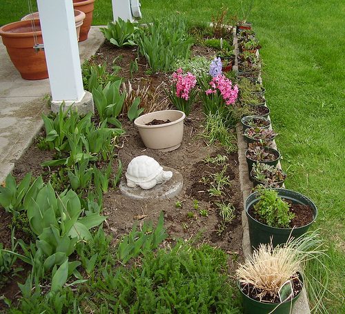 Многие любят приобретать готовые украшения. В магазинах строительных товаров, а также на рынках можно найти огромное количество муляжей, выполненных из дерева и керамических статуэток: ёжиков, птиц, гномов и других представителей живой и неживой природы. Все эти милые элементы придадут вашему участку внешний вид и привлекут к себе внимание прохожих. Если вы большой любитель воды, во дворе можно устроить маленький бассейн или фонтанчик. Бассейн/прудик можно заселить декоративными рыбками или даже карпами, а можно просто высадить водные растения, такие как камыш, кувшинки и другие. Возле воды всегда чувствуешь себя комфортно и приятно находиться в жаркое время суток.