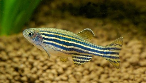 Данио-рерио («дамский чулок», «полосатик») — очень миролюбивые и подвижные рыбки мелких и средних размеров, ведущие стайный образ жизни. Желательно содержать не менее 8—10 штук. Их размер обычно не превышает 7 сантиметров. Тело длинное, серебристого цвета с ярко-синими полосами. У молодых рыб плавники короткие, со временем они отрастают и образуют вуаль. Рыбки отличаются энергичностью и прыгучестью, поэтому для их содержания лучше выбирать просторный аквариум и обязательно накрывать его сверху покровным стеклом. К составу воды эти рыбки совсем не требовательны, к температуре — тоже. Именно неприхотливость данио-рерио привлекла к ним внимание ученых: рыбкам были вживлены гены свечения. Генетически модифицированные данио также неприхотливы, а с возрастом становятся ярче и светятся пронзительно красным или зеленым цветом.