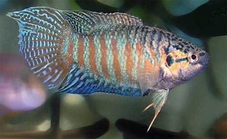 Мраморные гурами — одни из самых «неубиваемых» аквариумных рыбок, принадлежащих семейству лабиринтовых. У рыбок есть наджаберный орган (лабиринт), возникший в результате приспособления к жизни в воде, бедной кислородом. То есть рыбки могут дышать атмосферным воздухом и от нехватки кислорода не загнутся. В природе мраморных гурами не существует – они выведены путем скрещивания пятнистых и голубых гурами. Окраска рыб напоминает шлифованный мрамор. Рыбка достаточно крупная, но спокойная и мирная. На небольшой аквариум (до 40 литров) лучше завести всего пару мраморных гурами. Их величественные медлительные движения принесут спокойствие и умиротворение любому человеку, каким бы бурным ни был его прошедший день.