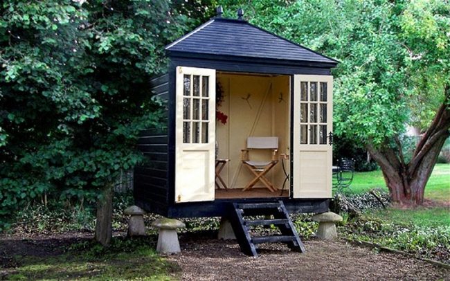 2. Оформите каждое из ваших строений как маленький домик – с крылечком, окошками, подвесными горшочками с цветами. А еще, около домика устройте небольшую «мини-усадьбу». Не хозблок – игрушка!
