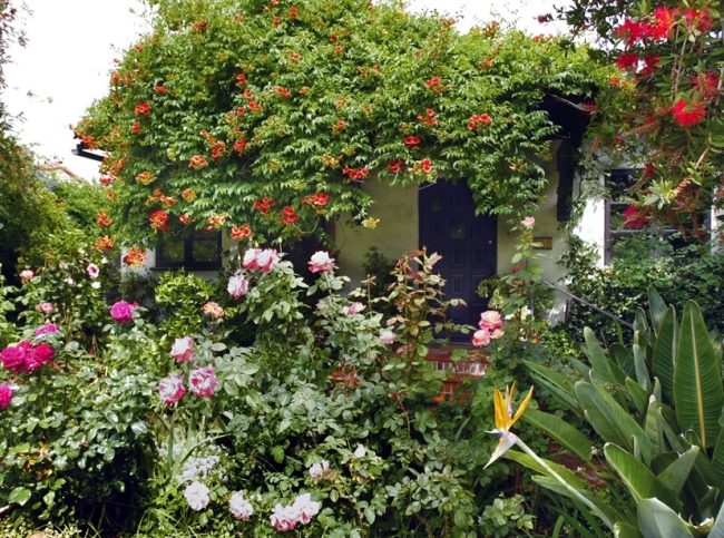 Лучше всего комбинировать многолетники, особенно цветущие и те, что имеют декоративную листву, с вьющимися растениями. Для забора лучший вариант – вьющиеся многолетники. Все, что вам потребуется, это закрепить на заборе опоры для них. Кроме того, забор можно замаскировать параллельно посаженной живой изгородью, отлично подойдет ель или липа.