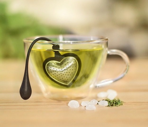 Ситечко для заваривания чая в форме сердца отлично сбалансировано — оно плавает в воде, а силиконовая ручка свободно висит на чашке. Ситечко подойдет на стандартный заварочный чайник.