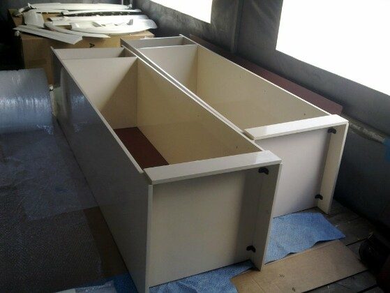 Сделаны они добротно, стоят крепко, но внешний вид уже давно устарел. Многие дверцы покосились и плохо закрываются, фасады в царапинах и потертостях.
