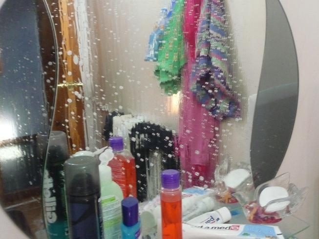 Чтобы зеркало в ванной не запотевало, протрите его кремом для бритья, после чего удалите крем мягкой тканью.