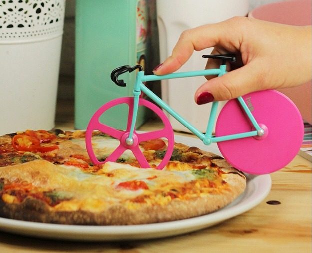 Этот нож придуман студией дизайна Doiy. Вдохновила их, конечно же, пицца и любимый вид спорта — катание на велосипеде. Острые вращающиеся колеса сделаны из нержавеющей стали, а миниатюрный руль позволяет управлять этим ножом.