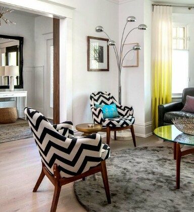 В данном случае речь идет как о мебельной обивке с зигзагообразным узором, так и об использовании данного рисунка в обновлении мебели (почему бы не оживить надоевший комод, нарисовав на нем яркие зигзаги?).Такая мебель может с легкостью вписаться практически в любой стиль интерьера и выглядеть при этом красиво и непринужденно.
