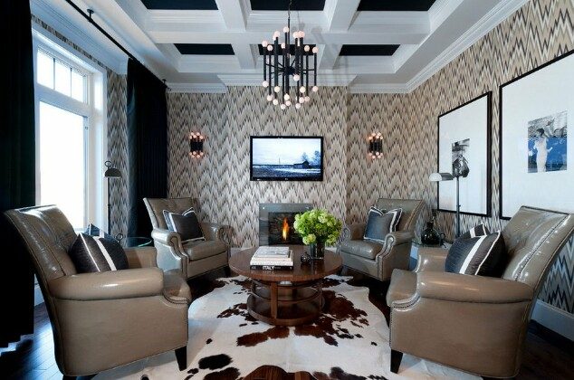 Зигзаг обладает интересной особенностью — он способен изменять геометрию комнаты, ломая пространство. Если оклеить выступ на стене обоями с зигзагообразным рисунком — он сольется с остальной стенной поверхностью и будет практически незаметным.
