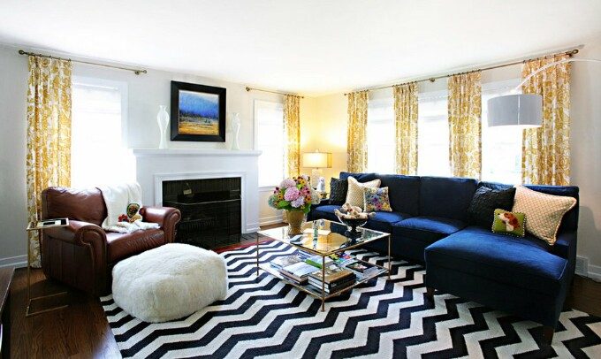 Ковер является одним из самых распространенных и простых способов добавления зигзага в интерьер. Такая деталь способна сделать комнату более интересной. Черно-белый вариант будет выглядеть стильно и гармонично.