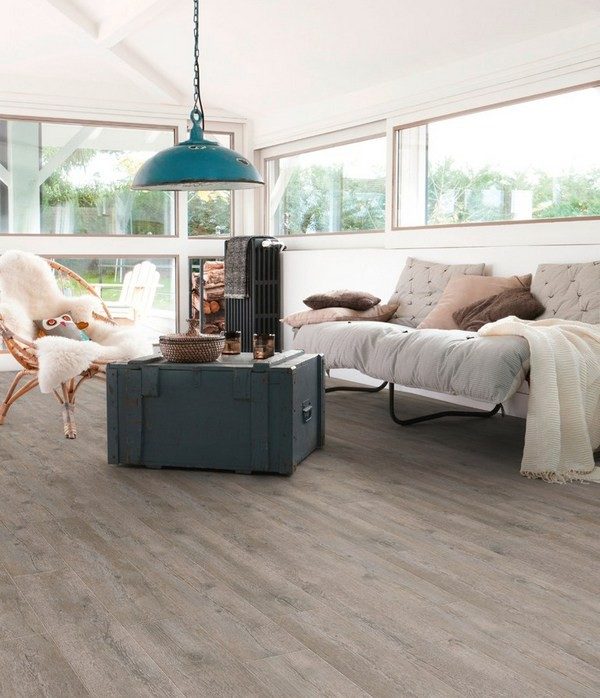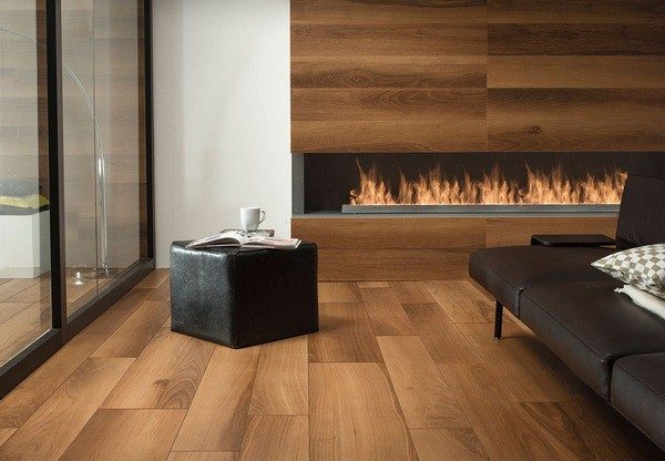 В небольших квартирах и квартирах-студиях дизайнеры рекомендуют создавать единое пространство, используя одинаковое напольное покрытие в холле, кухне и комнате. Керамогранит под дерево вполне может стать таким универсальным решением сразу для всей квартиры, а главное, поможет сэкономить средства и силы при ремонте.