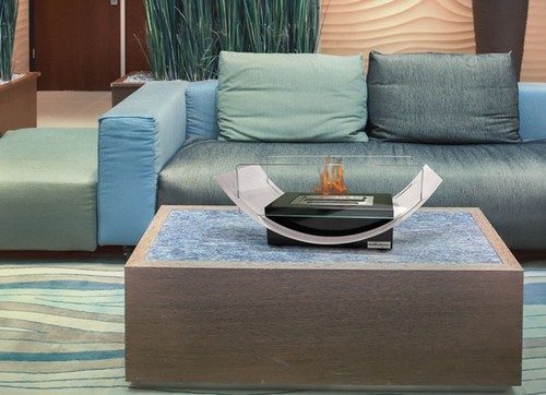 Небольшие биокамины встраивают в кофейные столики и полки; переносные конструкции могут использоваться как внутри помещения, так и снаружи.