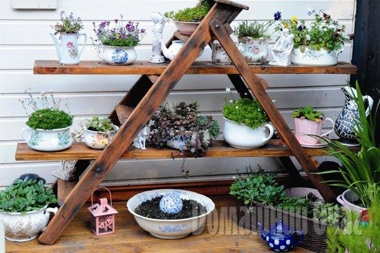 Bот это да! Творить чудеса на самом деле несложно, нужно приложить немного фантазии и поработать руками. Несколько деревянных досок, и обычная стремянка превращается в компактный стеллаж для растений, на котором удобно выращивать цветы, травы и свежую зелень.