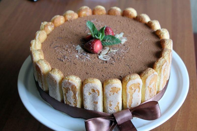 В крем для торта без выпечки «а-ля тирамису» можно добавить свежие фрукты, например, клубнику. Такой торт можно сделать в разъемной круглой форме, установив предварительно вдоль бортов формы печенье «савоярди», а дальше – все по рецепту.